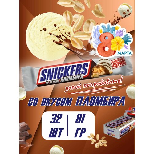 Батончик шоколадный Сникерс Пломбир 81гр, 32шт/уп