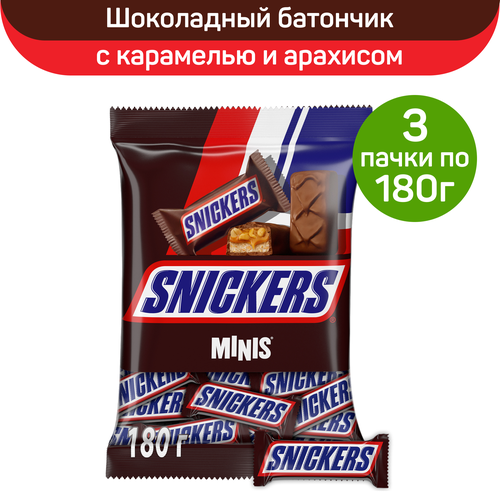 Шоколадные конфеты Snickers Minis с карамелью, арахисом и нугой, 3 шт по 180 г