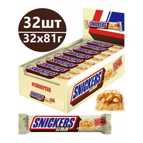 Шоколадные батончики Сникерс белый шоколад 81г * 32шт