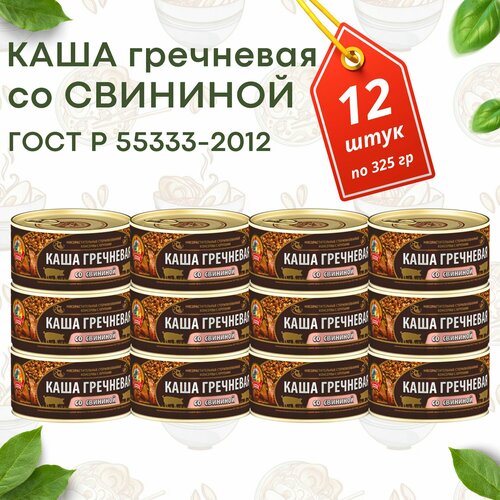 Каша гречневая со свининой ГОСТ консервы мясные Сохраним традиции 325г х 12 штук