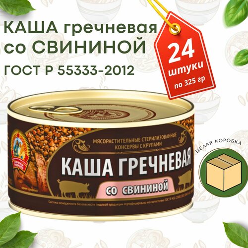 Каша гречневая со свининой ГОСТ консервы мясные Сохраним традиции 325г х 24 штуки