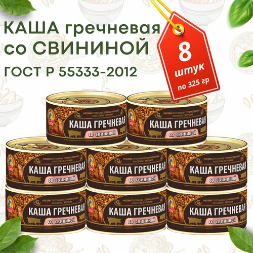 Каша гречневая со свининой ГОСТ консервы мясные Сохраним традиции 325г х 8 штук