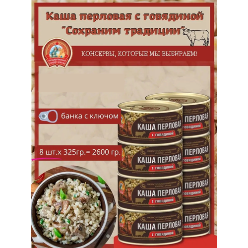 Сохраним традиции Каша перловая с говядиной, перловка с мясом консервы 8 шт
