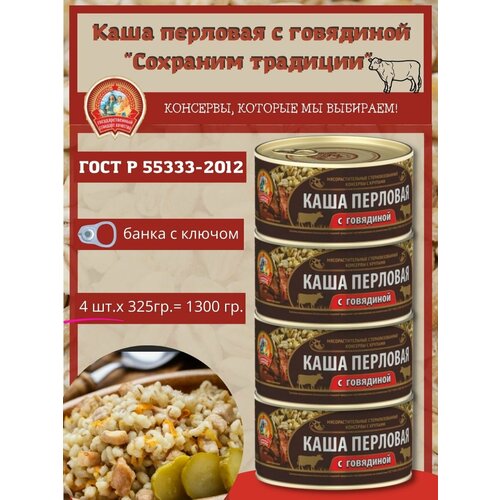 Сохраним традиции Каша перловая с говядиной 4 штуки по 325г