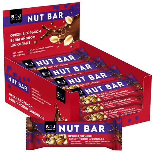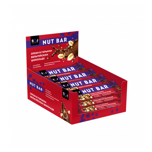 Ореховый батончик SOJ NUT BAR арахис миндаль со вкусом Айриш-крим в горьком Бельгийском шоколаде (40гр * 16 шт в наборе)