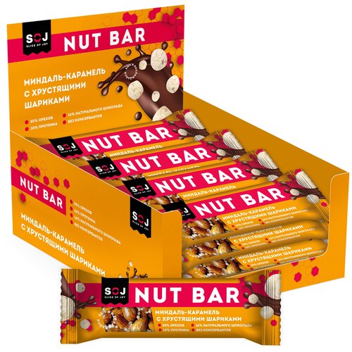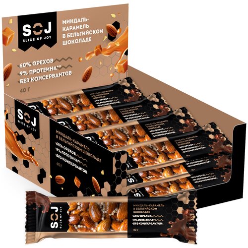 Ореховый батончик SOJ миндаль и карамель в молочном Бельгийском шоколаде (40г х 20шт в наборе)