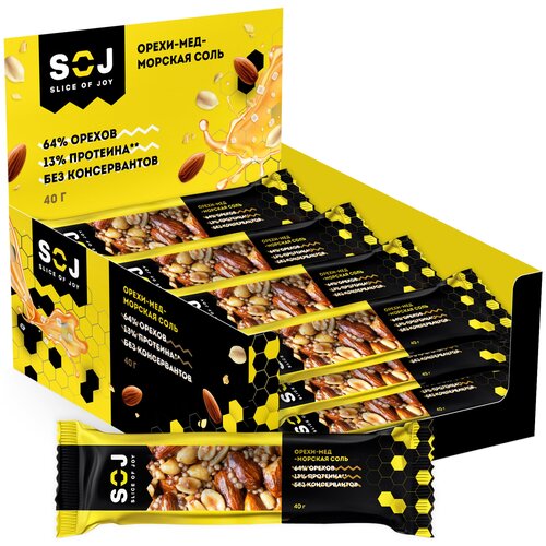 Ореховый батончик SOJ микс орехов мёд морская соль (40г х 20шт в наборе)