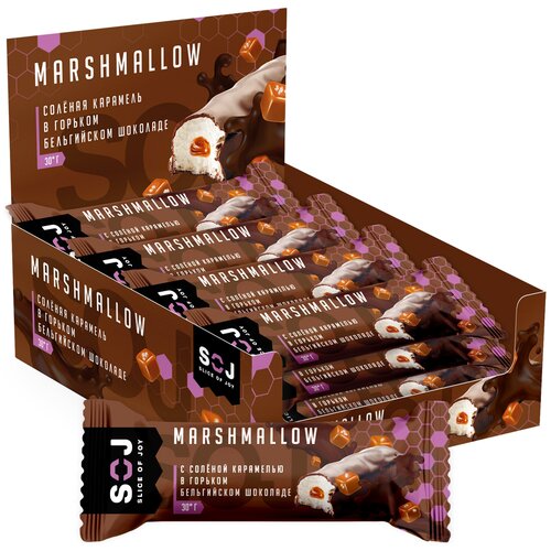 Маршмеллоу батончик SOJ с соленой карамелью в горьком Бельгийском шоколаде (30гр * 10шт в наборе)