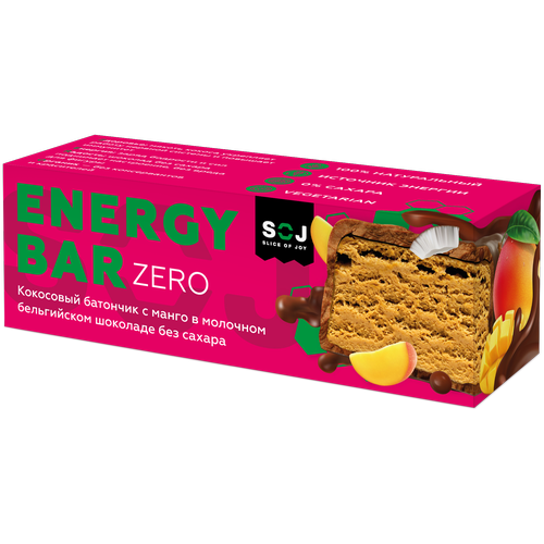Кокосовый батончик Energy Bar ZERO со вкусом манго в молочном бельгийском шоколаде без сахара 45г 35 шт