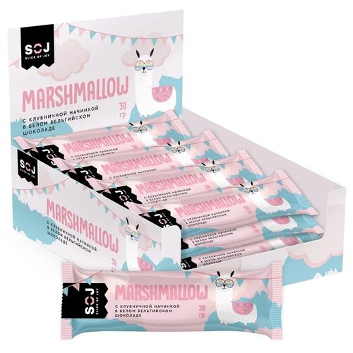Маршмеллоу батончик SOJ с клубничной начинкой в белом Бельгийском шоколаде ( 30гр * 10шт в наборе с ламой )