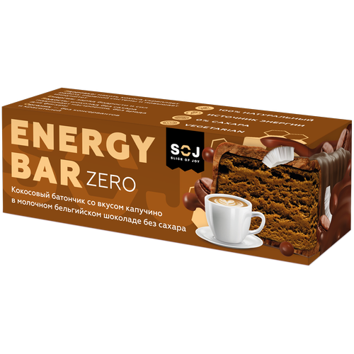 Кокосовый батончик Energy Bar ZERO с капучино в молочном бельгийском шоколаде без сахара 45г 35 шт