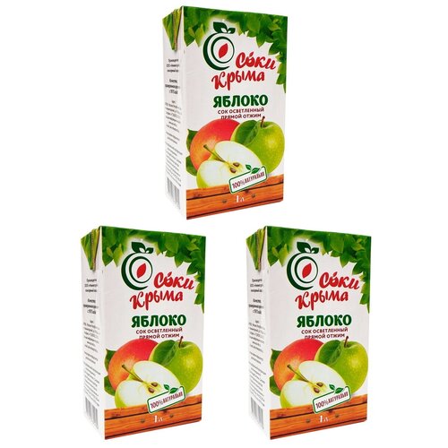 Сок яблочный осветленный прямого отжима / Соки Крыма / 3 штуки по 1000мл.