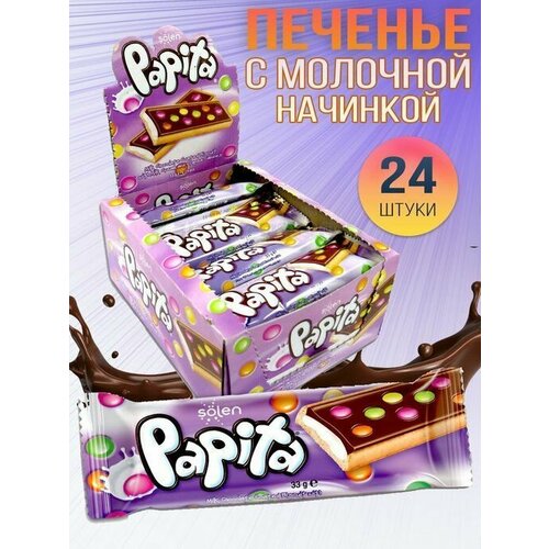 Печенье детское и взрослое Papita ассорти 3 вкуса по 4 шт (набор 12 шт) / Папита в молочном шоколаде с разными начинками и драже конфетами