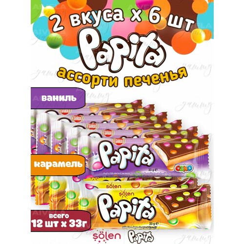 Печенье детское и взрослое Papita ассорти 2 вкуса (ваниль и карамель) по 6 шт (набор 12 шт) / Папита в шоколаде