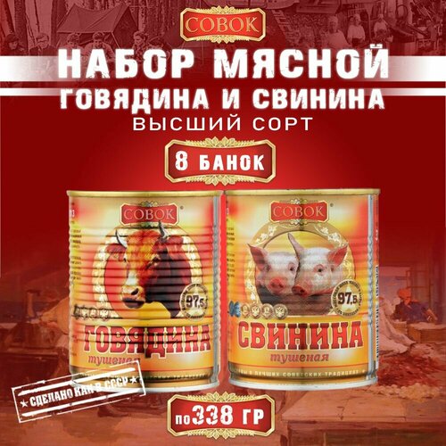 Набор мясной говядина и свинина тушеная совок, 8 шт по 338 г