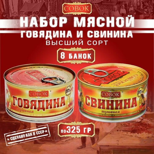 Набор мясной говядина и свинина тушеная совок, 8 шт по 325 г