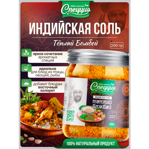 Соль индийская Спеццио "Теплый Бомбей", высший сорт, пищевая, обогащённая, в пластиковой банке, 180г