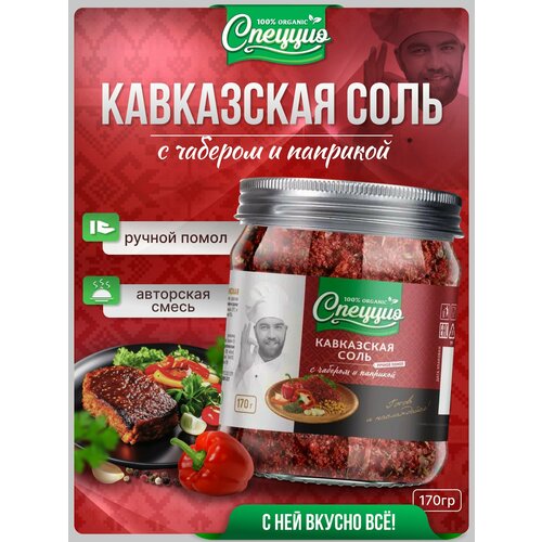 Кавказская соль со свежим чесноком, чабером и паприкой пищевая морская