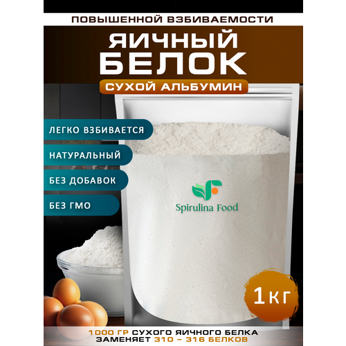 Сухой яичный белок SpirulinaFood, повышенная взбиваемость, 1 кг