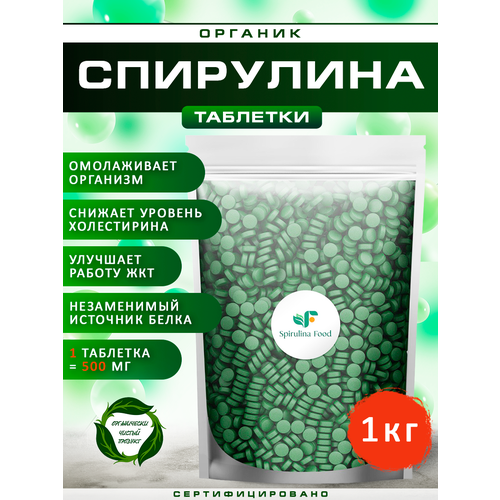Спирулина таблетки, 2000 штук (для похудения, детокс) Spirulinafood, 1000 гр