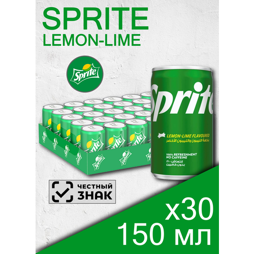 Sprite Lemon-Lime, 0.15 л, 30 шт, банка, газированный напиток Спрайт Лимон-Лайм, жб