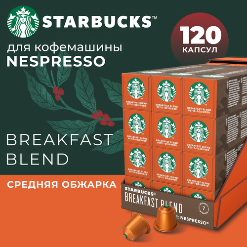 Кофе в капсулах Starbucks Nespresso Capsules Breakfast Blend, Старбакс в капсулах для кофемашины Неспрессо, эспрессо, 12 упаковок по 10 штук