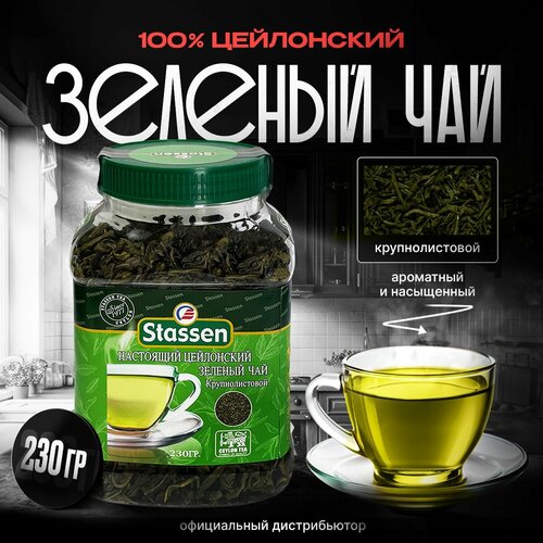 Цейлонский зеленый чай Stassen крупнолистовой в пластиковой банке (230 гр.) / Pure Ceylon Green Tea Big Leaf