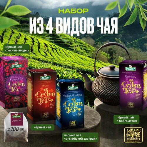 Набор чая Stassen, цейлонский черный чай в пакетиках, 4 пачки по 25 шт.
