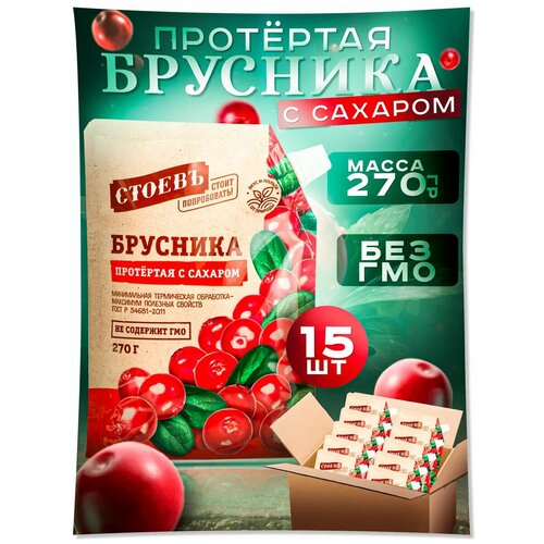 Брусника протертая с сахаром 15 шт в мягкой упаковке