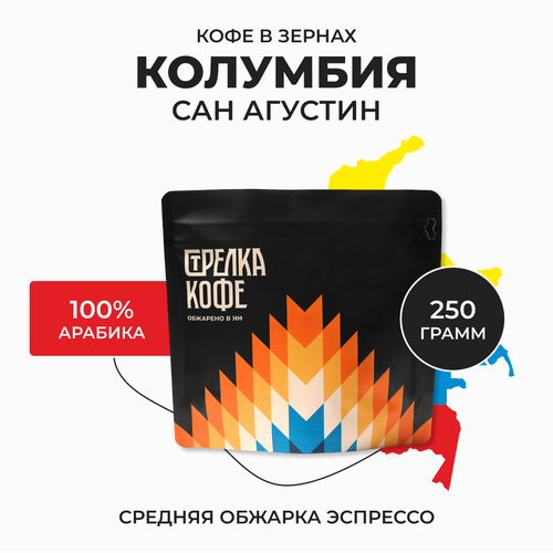 Кофе в зернах Арабика 100% 250 гр, Колумбия САН агустин, свежеобжаренный, натуральный, Стрелка кофе