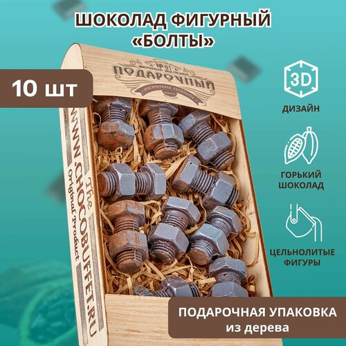 "Суровый шоколад" Шоколад кондитерский фигурный подарочный набор "Болт" 10 шт. горький 180 гр