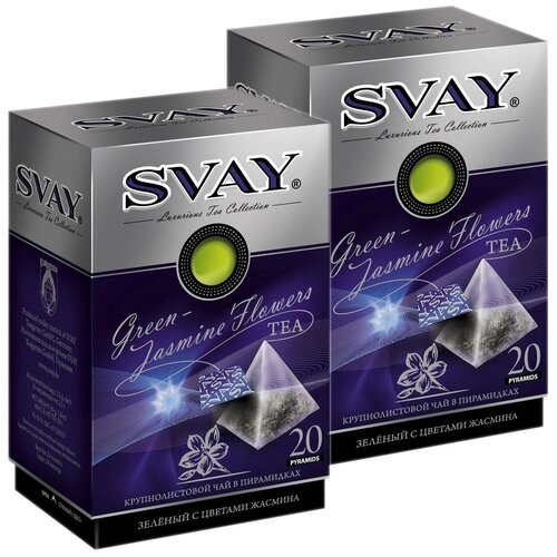 Чай Svay Green Jasmine Flowers (Зеленый с цветами жасмина), в пирамидках, 2×20шт