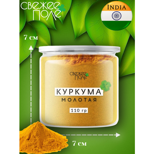 Куркума молотая натуральная Индия, сушеная, специи и приправы в банке Свежее Поле 110 гр