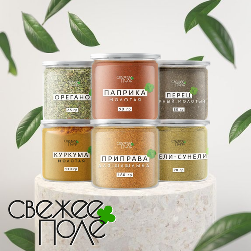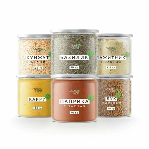 Набор специй 6 банок — специи, приправы и пряности Свежее Поле