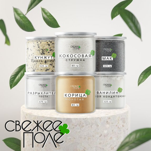 Набор специй для кондитера, выпечки 6 банок — специи, приправы и пряности Свежее Поле