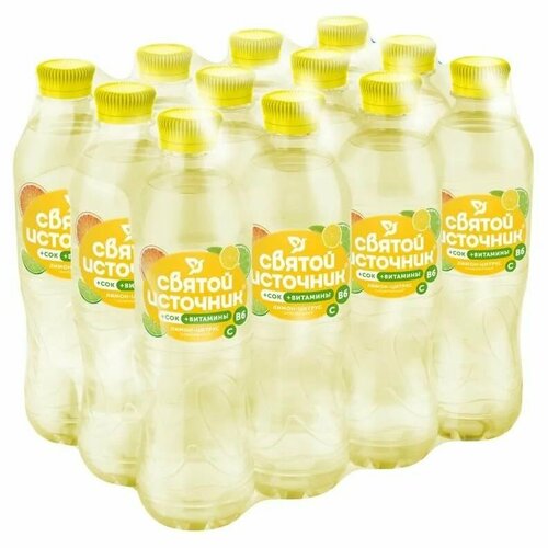 Вода питьевая Святой Источник с соком Лимон+Цитрус 0,5 л х 12 бутылок, газированная пэт