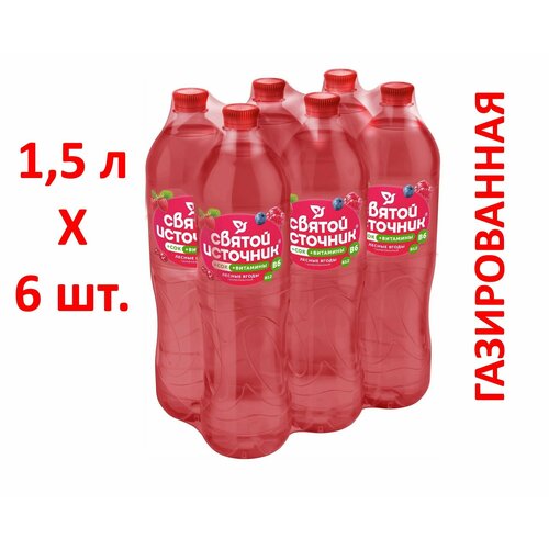 Вода питьевая Святой Источник с соком Лесные ягоды 1,5 л х 6 бутылок, газированная пэт