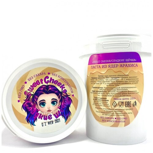 Арахисовая паста без сахара, натуральная арахисовая паста Sweet Cheeks, 500гр