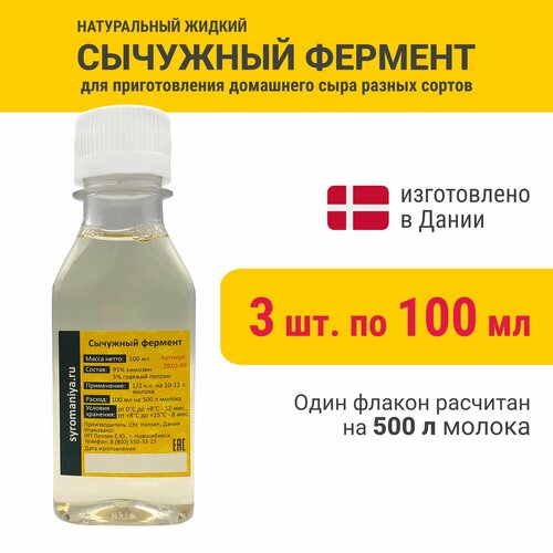 Сычужный фермент для сыра Сыромания 100 мл на 500 л молока, 3 шт.