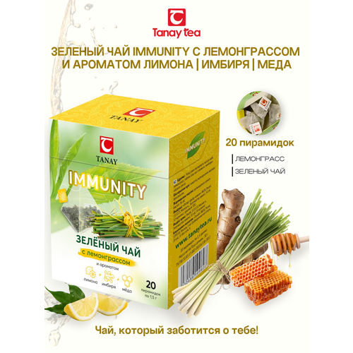 Чай зелёный байховый мелколистовой Tanay "IMMUNITY" с лемонграссом в пирамидках 20*1,5гр. с/я.