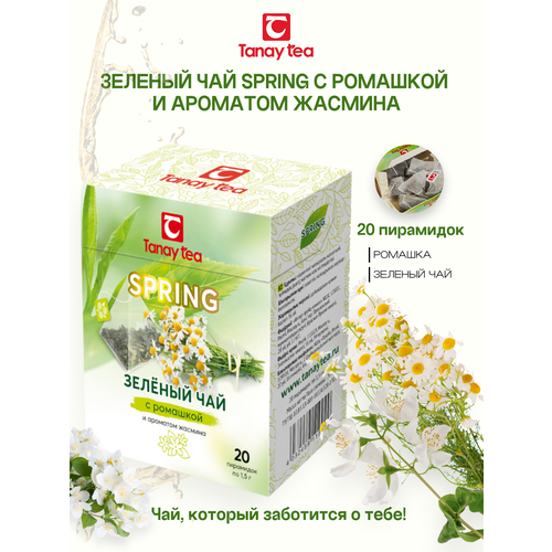 Чай зелёный байховый мелколистовой Tanay "SPRING" с ромашкой в пирамидках 20*1,5гр. с/я.