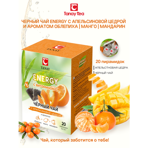 Чай чёрный байховый мелколистовой Tanay "ENERGY" с апельсиновой цедрой в пирамидках 20*1,5гр. с/я.