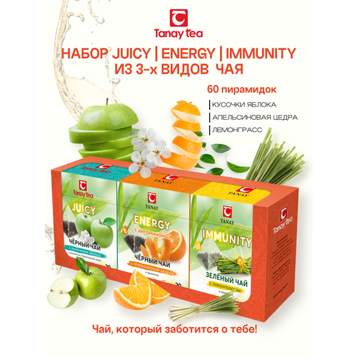 Чай Tanay, JUICY ENERGY IMMUNITY, зеленый/черный, в пирамидках, 90г, 60шт