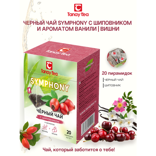Чай чёрный байховый мелколистовой Tanay "SYMPHONY" с шиповником в пирамидках 20*1,5гр. с/я.