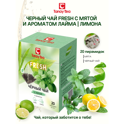 Чай чёрный байховый мелколистовой Tanay "FRESH" с мятой в пирамидках 20*1,5гр. с/я.