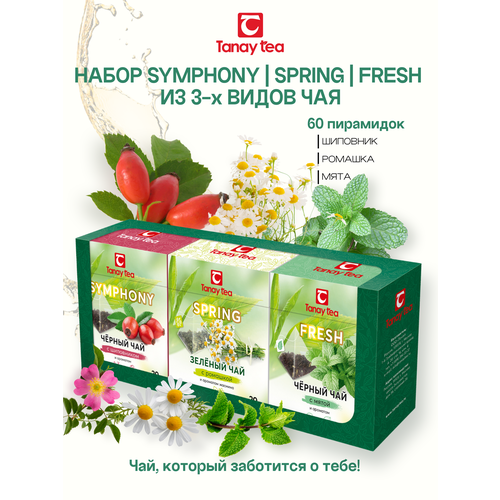 Набор чая Tanay SYMPHONY/SPRING/FRESH, зеленый/черный, в пирамидках, 90г, 60шт