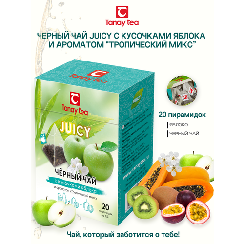 Чай чёрный байховый мелколистовой Tanay "JUICY" с кусочками яблока в пирамидках 20*1,5гр. с/я.