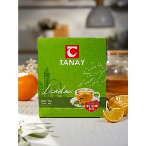 Чай зелёный байховый мелколистовой Tanay "Лондон" пакетированный 100*2гр. с/я.