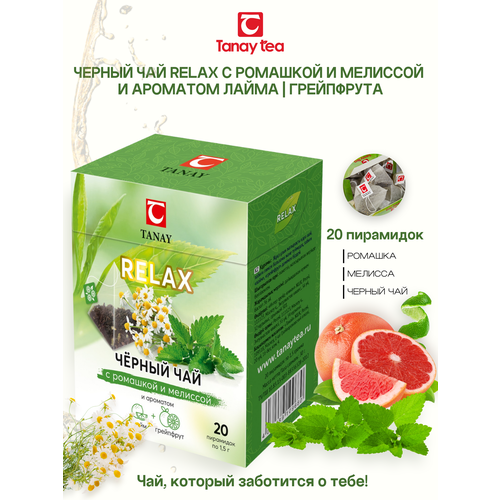Чай чёрный байховый мелколистовой Tanay "RELAX" с ромашкой и мелиссой в пирамидках 20*1,5гр. с/я.