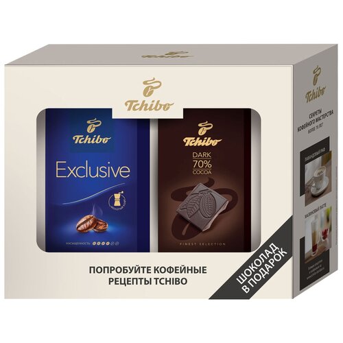 Кофе молотый Tchibo Exclusive и шоколад Tchibo Dark 70% cocoa, подарочный набор, 350 г
